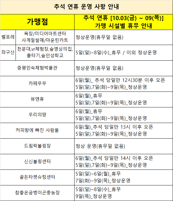 [추석연휴기간 운영안내]