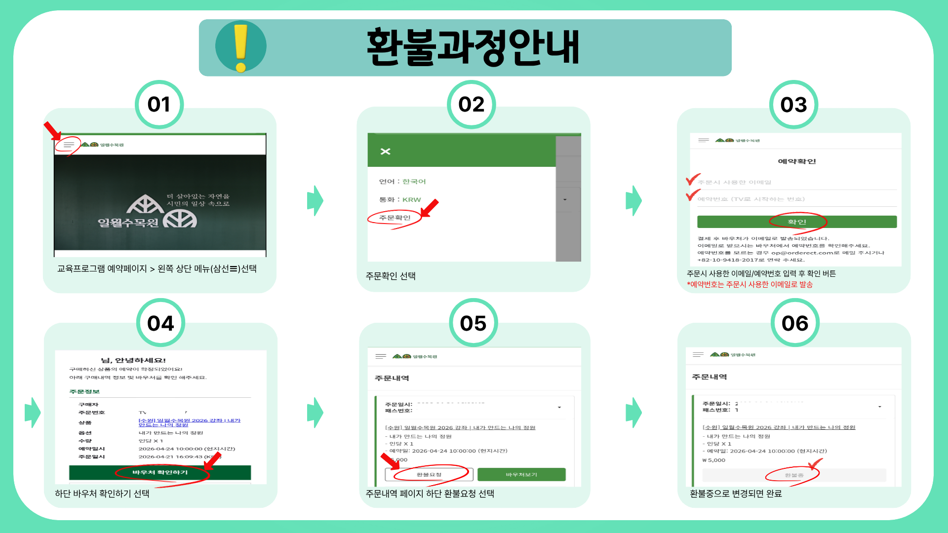 4. 체험 프로그램 운영일 당일 늦지 않게 영흥수목원 안내데스크에서 장소 안내를 받아주세요.
